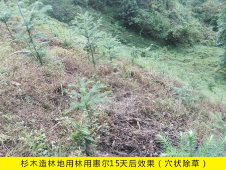 云南省田疇縣使用林用惠爾防除杉木造林地除草效果